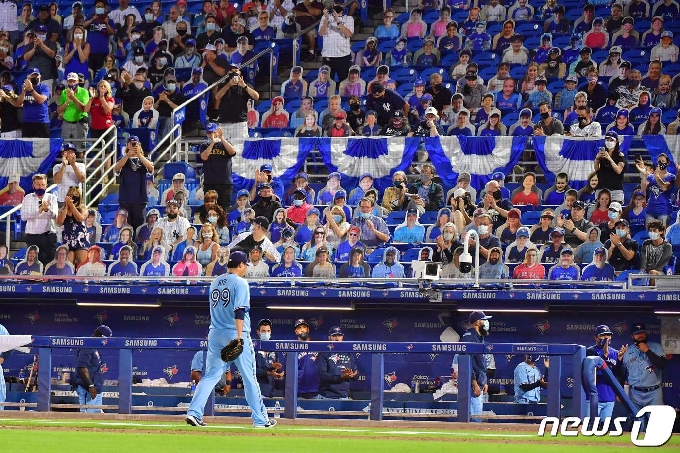 연합뉴스 자료사진 (서울=연합뉴스) 장현구 신창용 기자 = '코리안 몬스터' 류현진 (33·토론토 블루제이스)의 올해 연봉 중 4분의 3이 허공으로 날아갈 판이다.